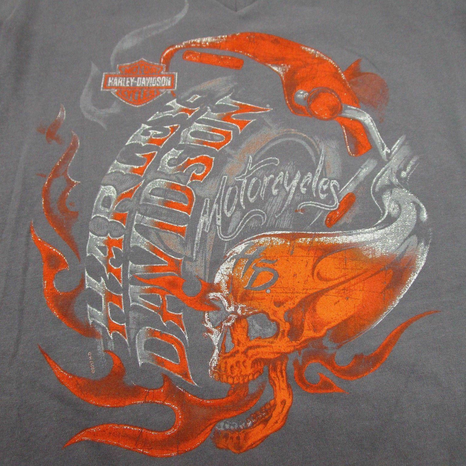 This cotton blend moisture wicking tee features an awesome custom Harley-Davidson® Flaming Skull.