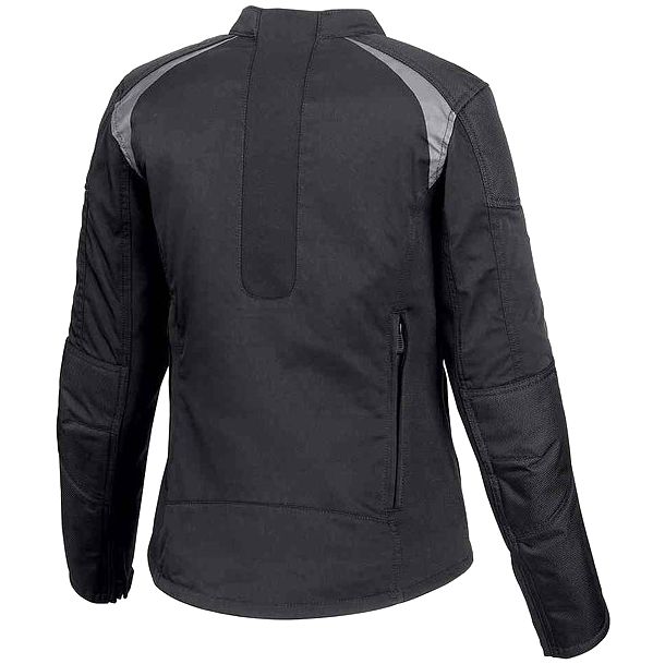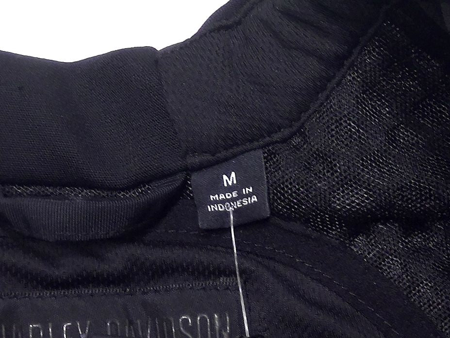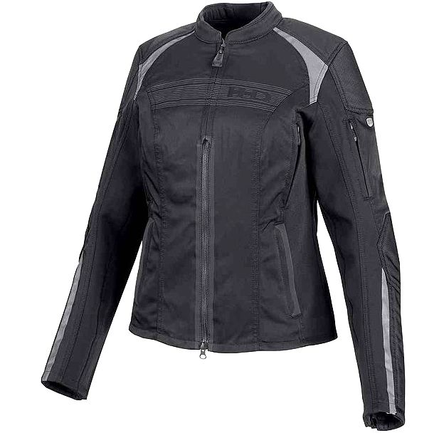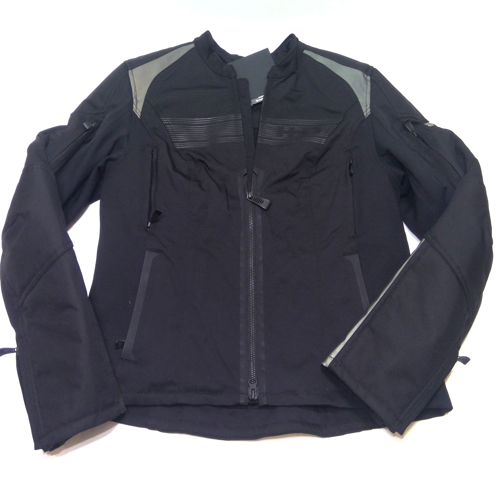 Harley-Davidson® Women's Ledgeview Stretch Riding Jacket, 98335-19VW. Two front vents, two sleeve vents, and two back vents. Coolcore lining at collar, cuffs and back armor pocket for cooling effect. Pre-curved sleeves. Stretch side, sleeve, and back panels. Sewn-in flexible, lightweight body armor at elbows and shoulders. Back body armor pocket fits body armor 98317-19VR, sold separately. Reinforced padded elbows/shoulders. Airprene collar trim for comfort. Reflective accents. Zipper hand-warmer pockets. One interior stash pocket and one interior zipper pocket with media port. Two-way zipper front. Zipper cuffs. High-density graphics. Metal badge. Made from 90% nylon and 10% spandex oxford. Also 87% nylon, 13% spandex dobby side, sleeve, and back stretch panels. 3D polyester mesh body and sleeve lining. Polyester Coolcore collar, cuffs, and back armor pocket lining. 98335-19VW