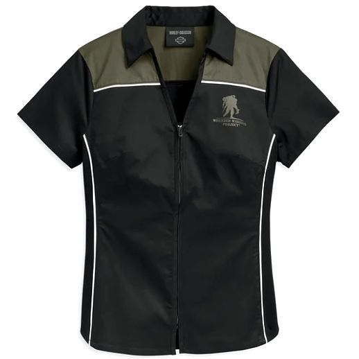 For work or play, you’ll nail the look while supporting military heroes in our Limited Edition Harley-Davidson Wounded Warrior Project Zip Front Shirt. Crafted from a sturdy cut of cotton twill washed for softness, with a hit of spandex for added comfort and stretch. Features a stylish pop of contrast piping and yoke piecing, plus a hidden snap-down collar that stays put while you ride. A subtle salute to those who serve graces the front, while our scripted namesake scrawls across the back. Your purchase from this special-edition line fuels motorcycling initiatives aimed at helping wounded warriors manage their invisible wounds, enhance their resiliency skills, and empower them to live productive and fulfilling lives. Keep military pride going while adding a warmer layer with our Harley-Davidson Wounded Warrior Project Zip Front Hoodie.
