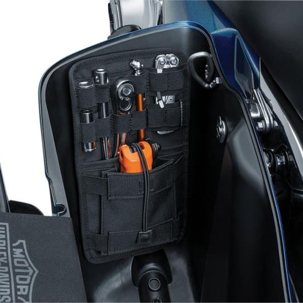 - Will mount on the inside panel of any OEM hard bags with a depth greater than 11 inches