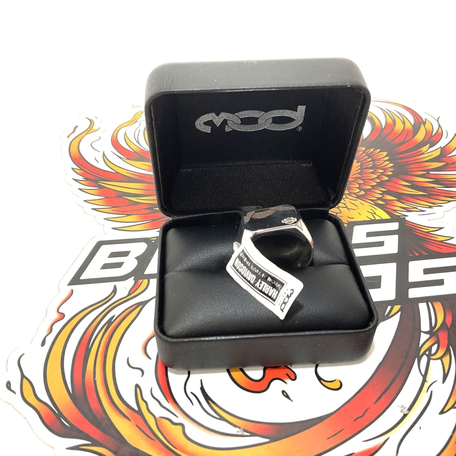 Harley Mens Size 10 Modern Edge Bar & Shield Signet Ring Sterling Silver HDR0579