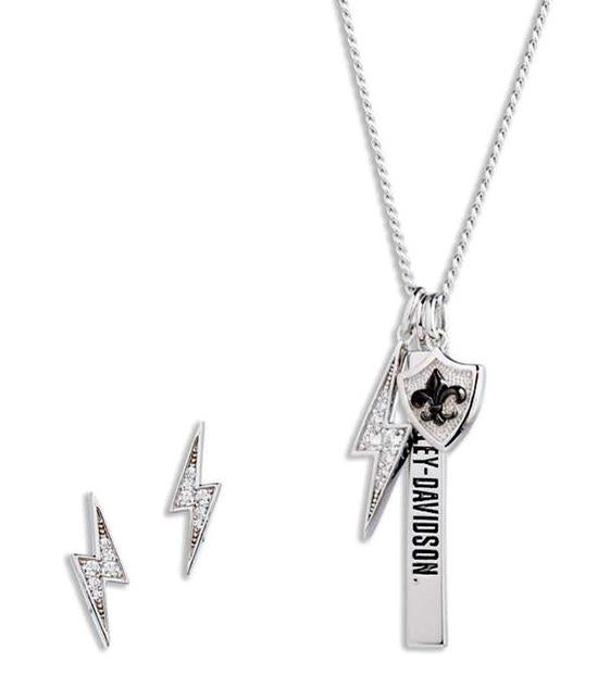 Harley Part # 34S00018 - NEW Harley Women's 16" Lightening Charm Necklace & Earring Set Silver