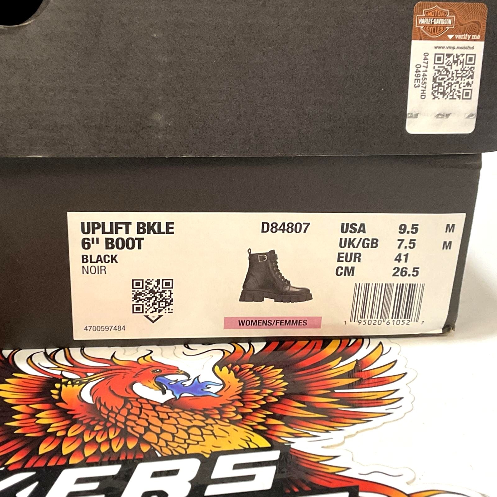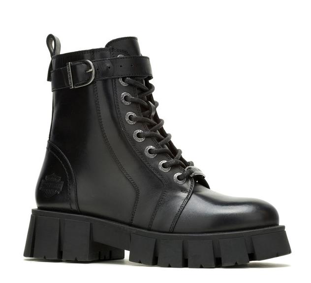 These Uplift Buckle boots are right-on-trend with the moto boot fashion craze – no matter where they take you, heads will turn. The sleek all-black look with a top buckle and an over emphasized outsole is perfect for day-to-night looks. Feel powerful and confident with these always in-style boots. A smooth rounded toe leads up to metal logo eyelets with cord likening. A metal Harley-Davidson® badge marks the bottom lace. After stepping-in and zipping-up using the YKK® locking inside zippers, secure your fit using the top strap with logo buckle. Made with full-grain leather with a full-length mesh lining for total comfort, you are ready for anything. A debossed Bar & Shield® logo has been pressed into the outside facing heel counter. Lightweight outsoles and heels make each step seem effortless. The boot's sole, insole and upper are bound using cement construction processes, a time honored and durable method that allows for a flexible and easy stride. Adding to the 6-inch shaft, the gentle 1.75-inch heel adds the perfect lift. Another Harley® logo can be found on the street-side instep. For work or play, no matter the activity, these boots will turn heads, and in a good way. Total height: 7.75”, Shaft height: 6", Heel height: 1.75". Sizes US: M 5-10. Manufacturer Part Number D84807. Wolverine® and Harley-Davidson® have a long tradition of bringing original and functional footwear to our Motorcycle enthusiasts. Loyal. Tough. Fearless. Our Footwear embodies the spirit of the open road, as well as the men and women who proudly wear the name. With a growing global presence, Harley-Davidson® Footwear markets functional riding and Motorcycle footwear to anyone who seeks quality and values the Harley-Davidson® brand. Whether it's performance or Motorcycle, we have what you need. Officially Licensed Harley-Davidson® Product by Wolverine®.