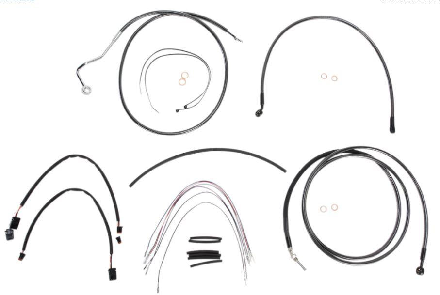 - Kit includes throttle and idle cables of throttle-by-wire extensions, clutch cable or hydraulic clutch line, brake lines, copper crush washers, hardware, and any necessary switch wiring of turn signal extension, unless otherwise noted