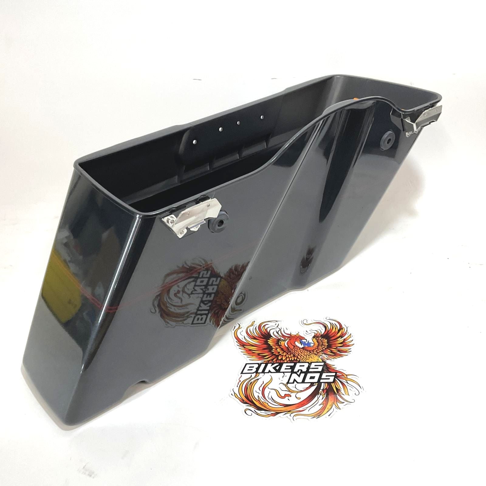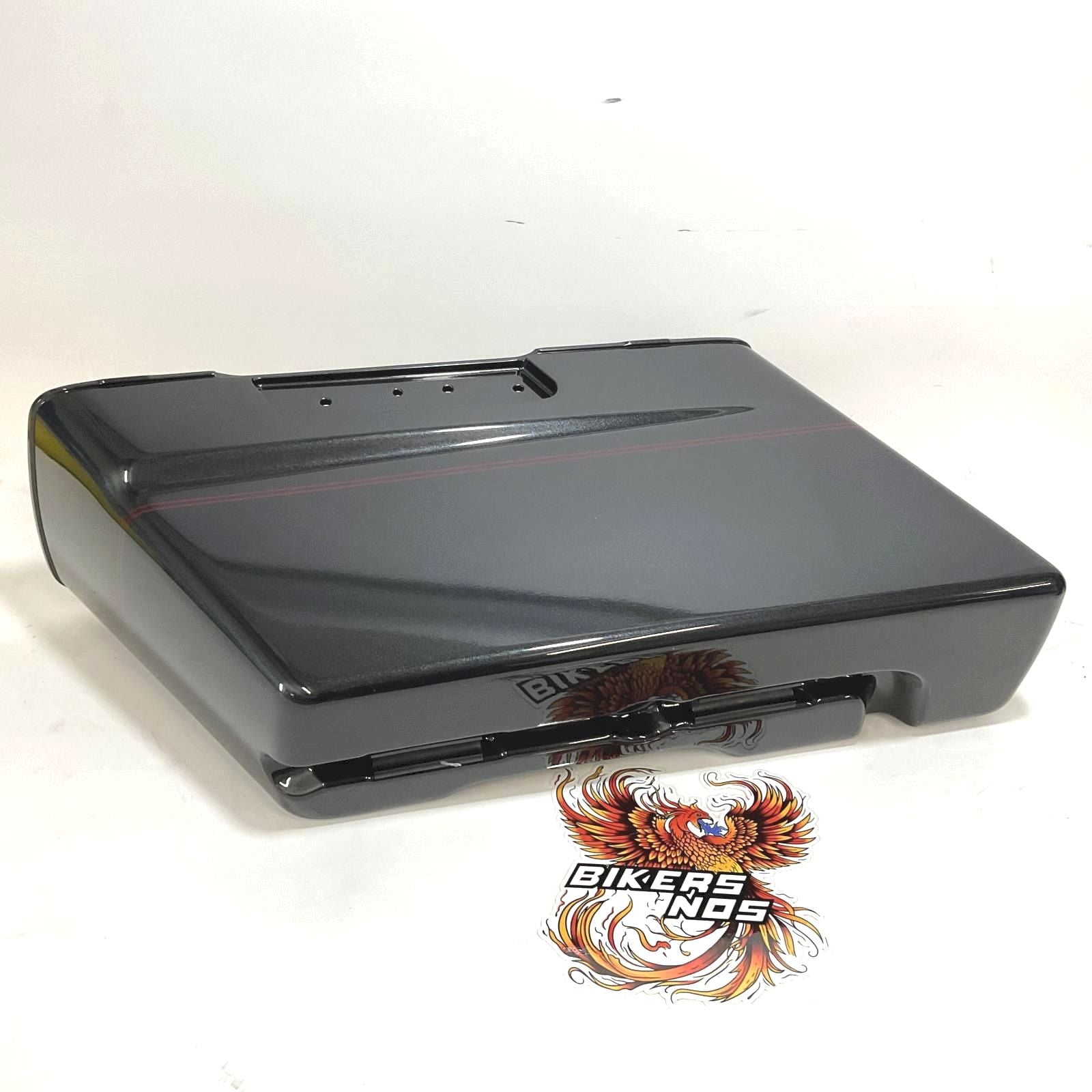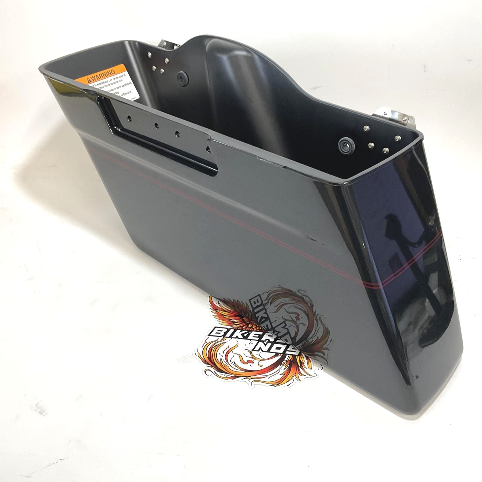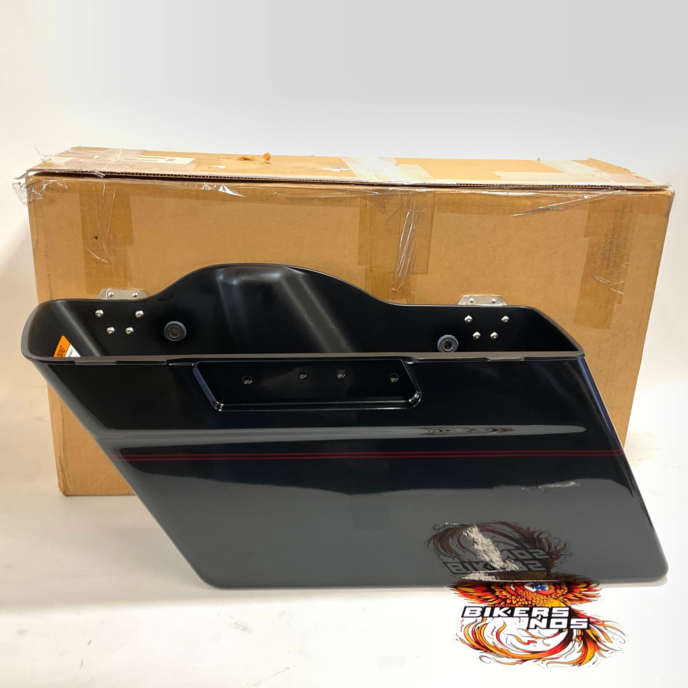 Harley Part #90650-06BRD - NOS Genuine Harley 1993-13 Touring Left Bottom Saddlebag Black Pearl With Burgundy Pinstripe
