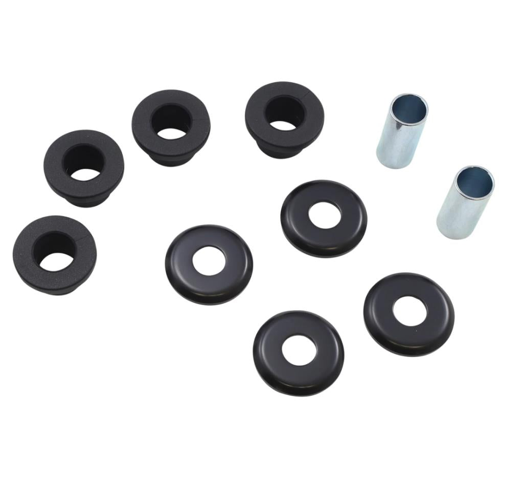 - Each kit includes polyurethane bushings, inner steel sleeves and heavy duty black coated cup washers