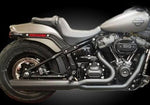 The Fat Cat is a stepped 2 into 1 header system at 1 3/4″-1 7/8″-2 1/8″ at collector -2 1/2″ where the muffler goes to the header. The M8 Softail Fat Cat full system is equipped with heat shields, exhaust gaskets, bolt kit and baffle and has a 4″ muffler housing with a louvered baffle and back cut tip.