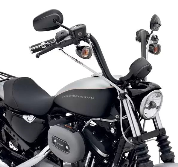 Raise your fists to the wind. This 1.0" diameter Mini-Ape Handlebar features a conservative rise and bend for rider comfort and a chrome or satin black finish that complements the aggressive look of the Nightster® and Street Bob® models.