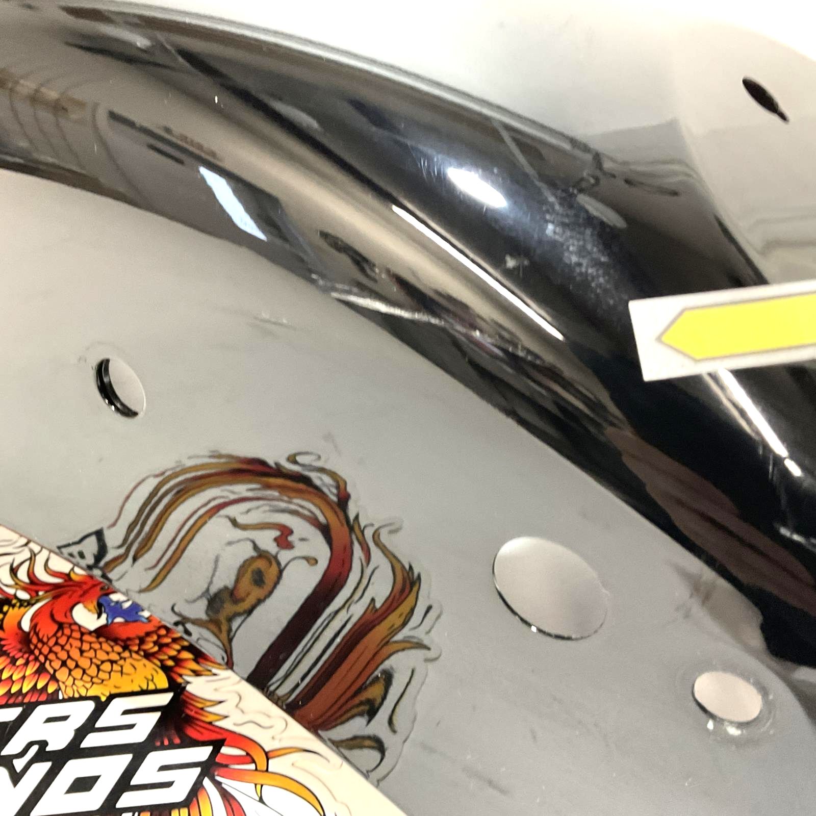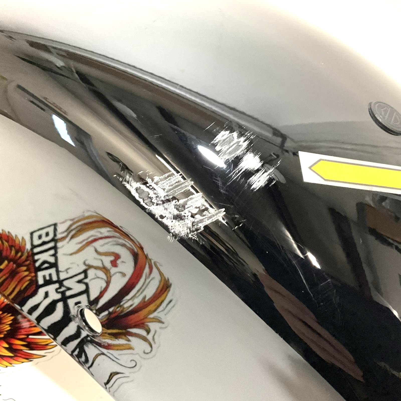 Used, has some significant scratches through the paint. No dents. See photos with arrow stickers.