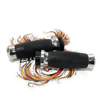 Dressed in tactified rubber for superior traction, these elegant hand grips provide a positive connection to the controls in wet or dry weather. The soft touch cross-hatched rubber surface feels good against both gloved and bare skin, and the "thicker in the middle" profile forms a natural fit with your closed fist.
