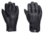 Harley-Davidson® Women's Fairhaven Touchscreen Full-Finger Leather Gloves, 98328-19VW. Ergonomic thumb and 30º pre-curved fingers. Elastic flex palm and back of hand. Comfort seams. Elastic wrist with adjustable closure. Foam knuckle padding. Padded palm. Touchscreen compatible. Metal badge. Cowhide leather. Unlined palm and tricot lining top of hand. 98328-19VW