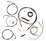 Kits include the correct length braided brake/clutch lines and wire extensions to complete a handlebar swap. Black "T" brake line junction, banjo bolts, fittings and copper crush washers included. Made in the U.S.A. Kits are based on using 2" risers with Ape Hanger handlebars.
