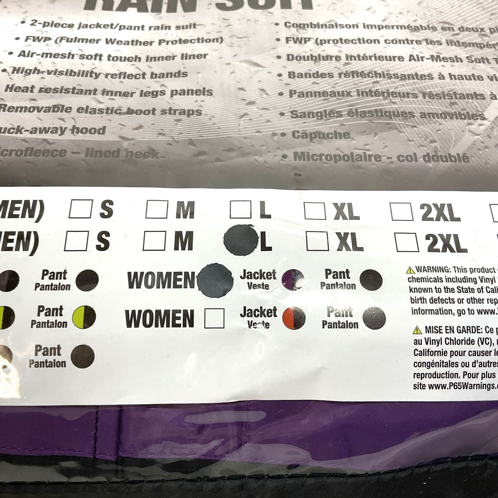 Part # 29-9896 NEW Fulmer Women Large 452 Legacy 2-Pc Reflective Biker Rain Suit Black Purple