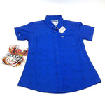 Women’s blue short sleeve party shirt