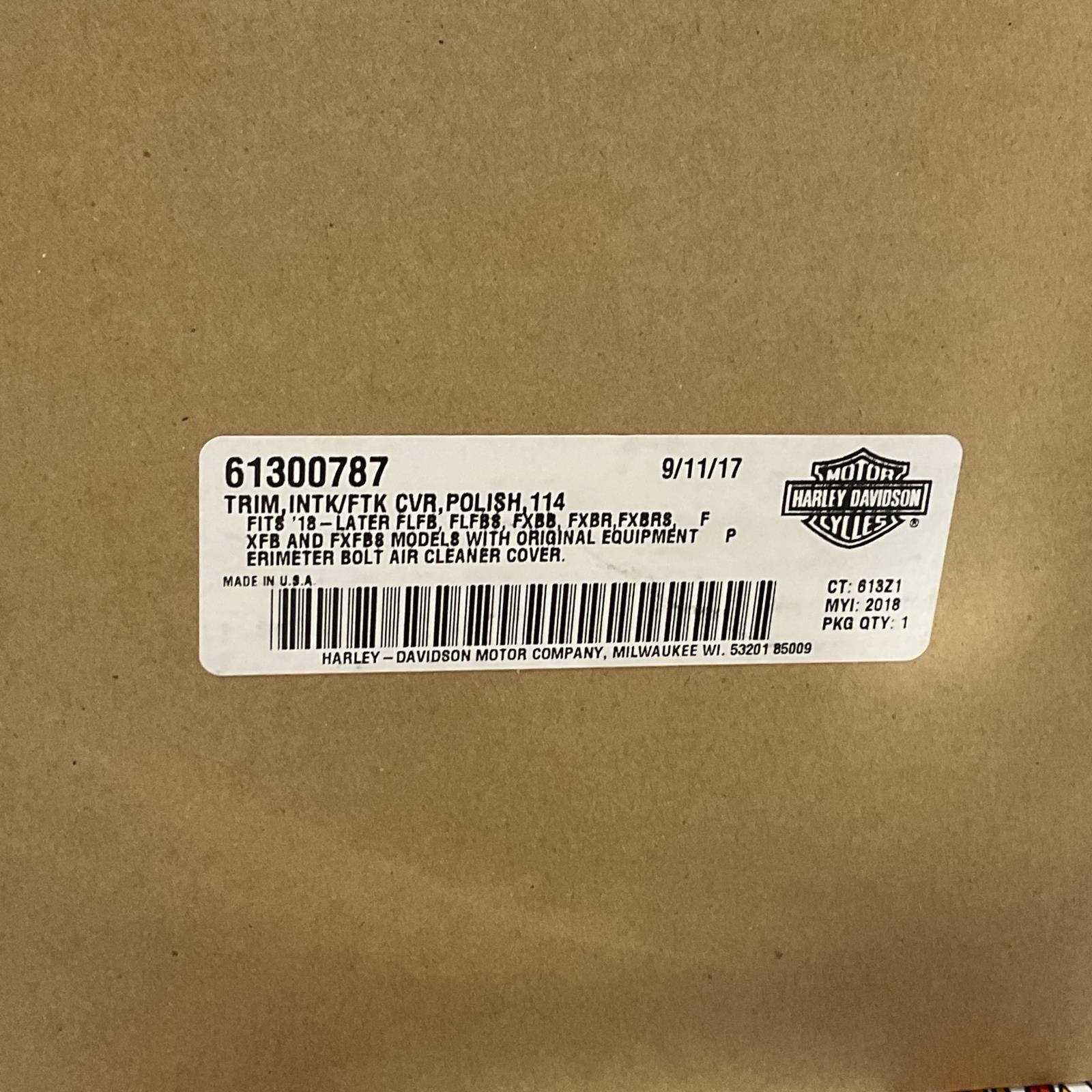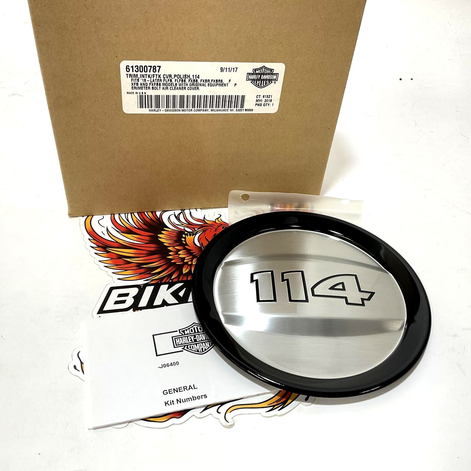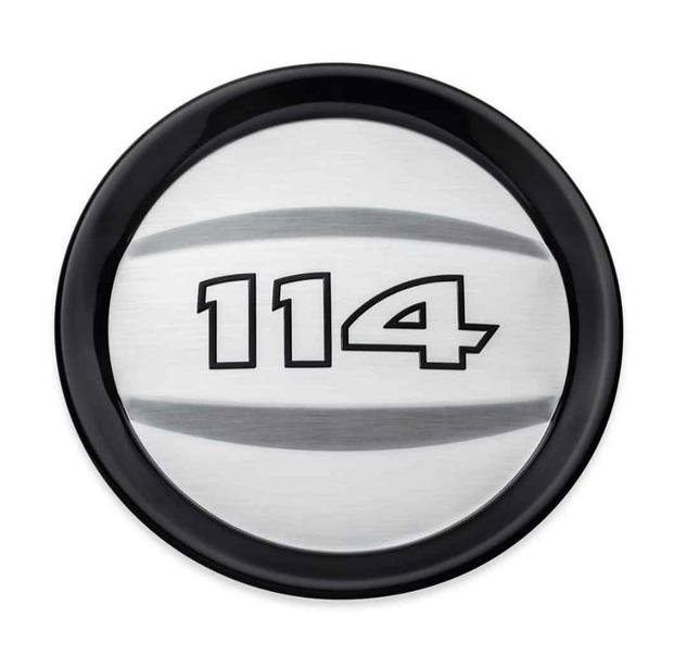 Harley-Davidson® 114 Logo Air Cleaner Trim, 61300787. Fits '18-later FLFB, FLFBS, FXBB, FXBR, FXBRS, FXFB and FXFBS models with Original Equipment perimeter bolt air cleaner cover. Show off your Milwaukee-Eight engine's displacement with pride. This brushed aluminum and black trim is the perfect complement to chrome or black engine finishes. Brushed Aluminum finish. Fits perfectly into the recessed face of the Softail models Original Equipment perimeter bolt air cleaner cover. Formed from aluminum. Self-adhesive. Easy to install. 1 year limited warranty. 61300787