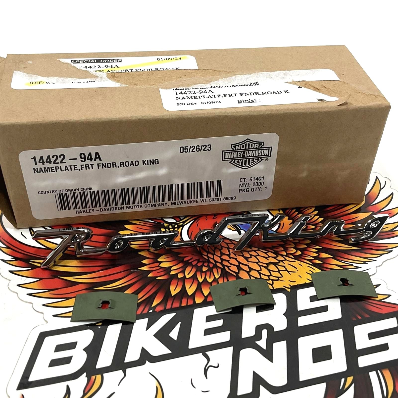 Includes 1 Road King Nameplate with 3 push nuts as pictured