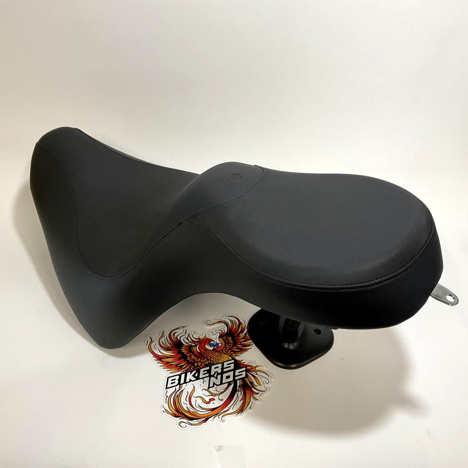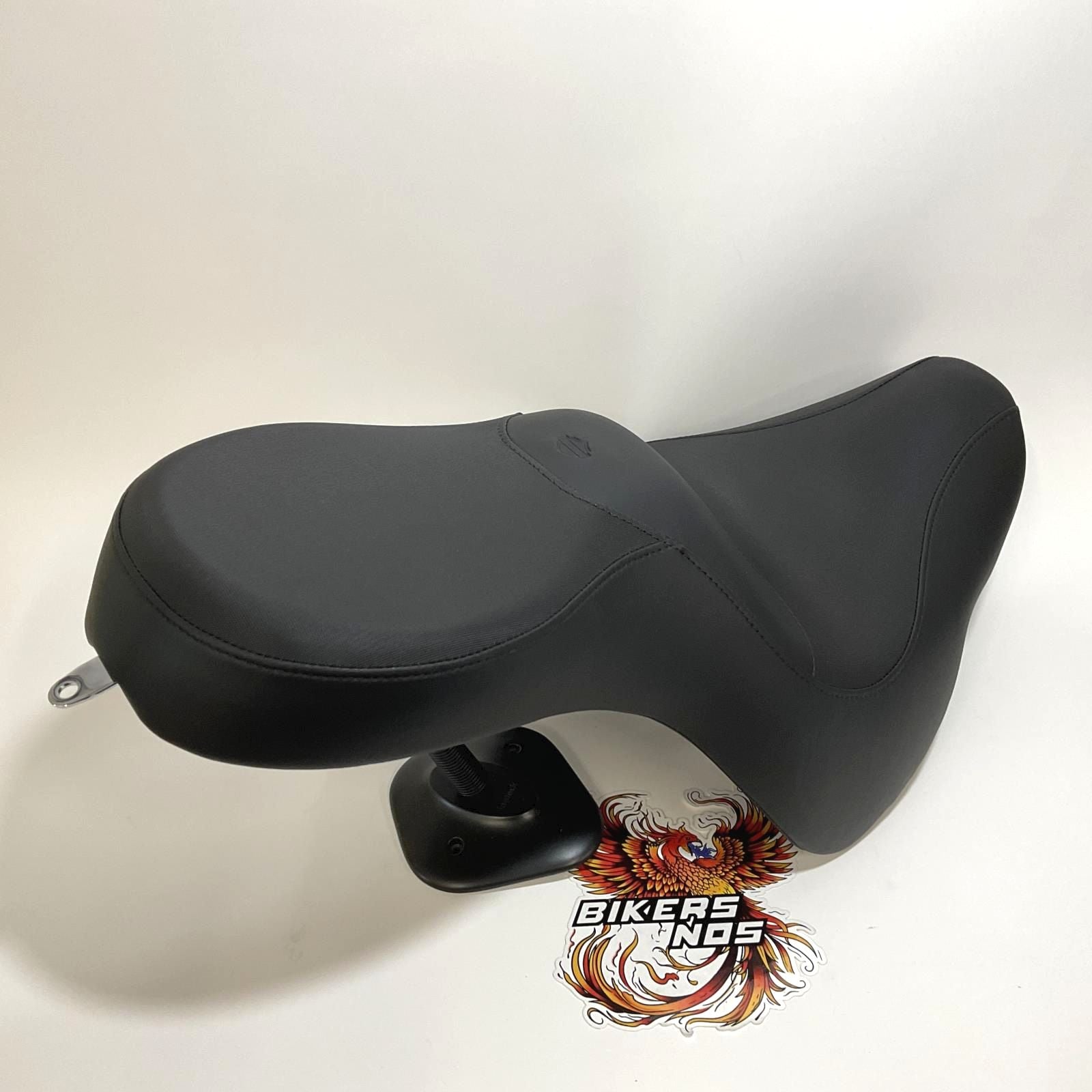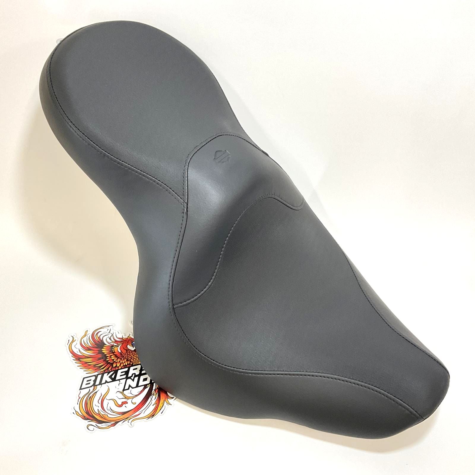 Designed specifically for riders requiring a close to the bar riding position, this seat positions the rider approximately 1.0" forward and the narrow front profile brings your legs closer together to help you plant your feet firmly on the ground. The seat features a textured vinyl insert and a Bar & Shield logo that shows you are riding in style.