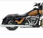 The Screamin’ Eagle High-Flow Exhaust system provides bolt-on performance by reducing the catalyst restrictions and improving exhaust flow. This exhaust system is optimized for use with Screamin’ Eagle Stage Kit-equipped Milwaukee Eight engines. The complete exhaust system starts with race-shop constructed oversized mandrel-bent and hand TIG-welded stainless steel head pipes, and flows through a unique crossover to improve the flow of spent cylinder gasses. The large inlet 4.5" Street Cannon mufflers feature baffles that are optimized for aggressive performance and sound under acceleration, and deliver a rich mellow note. The combination of tuned-flow headers and Street Cannon mufflers with relocated catalyst maximizes horsepower, maintains solid midrange torque and manages heat. The proof is in the horsepower and torque numbers. Dial the system to your motorcycle by using the Screamin’ Eagle Pro Street Tuner to tune your ECM specifically to match your performance upgrades. The complete system includes exhaust headers pre-tapped for standard or Screamin’ Eagle wide-band O2 sensors, large 4.5" diameter Street Cannon mufflers, and matching exhaust heat shields. Complete the look with your choice of custom muffler end caps (sold separately). 50-State U.S. EPA compliant.