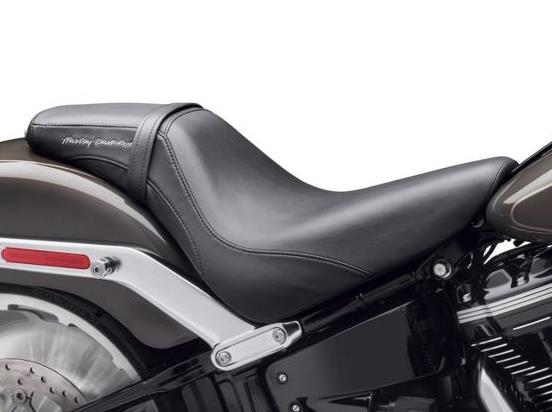 The low design delivers a reduced seat height that is ideal for riders that want the shortest possible reach to the ground, and the long and lean shape allows tall riders to move back from the hand and foot controls without sitting higher on the bike. This seat is wrapped in water-resistant vinyl and finished with an embroidered Harley-Davidson script. Kit includes grab strap and all mounting hardware.