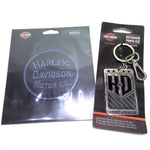A perfect simple bundle for a gift! Included is 1 Harley Davidson 3" Minimal Vintage Circle Patch iron on patch, and 1 Harley Davidson Carbon Fiber H-D Flag keychain.