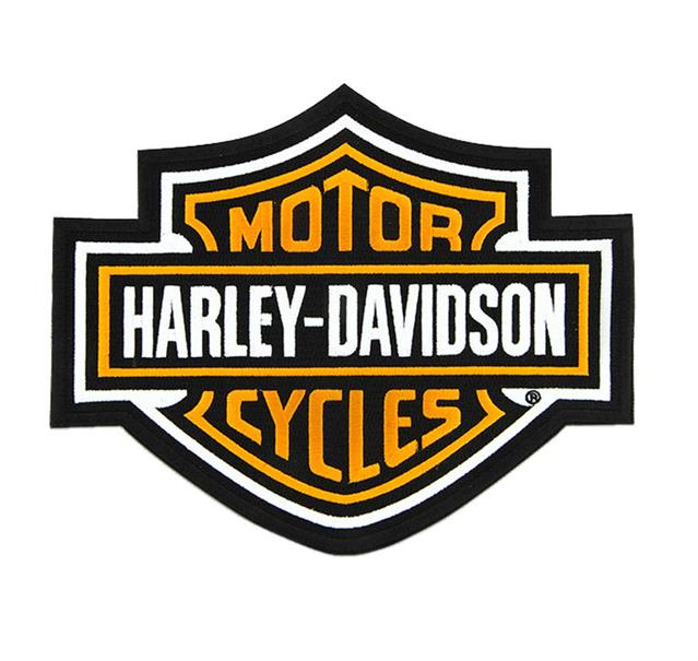 Harley-Davidson® 9.25" Orange Bar & Shield Logo Patch, 8011420. High-quality embroidered iconic Bar & Shield logo. Classic Harley® orange. Sturdy black woven trim that will hold up ride after ride. Large size patch, Size: 9.25" x 7.54". Sew-on patch. Great looking patch to be sewn on your vest or jacket.