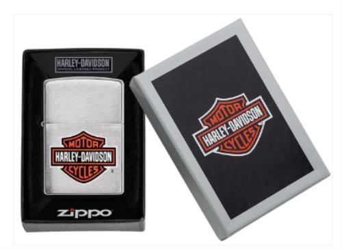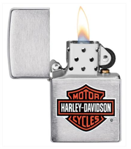 This Harley-Davidson lighter features the classic orange and black Harley-Davidson bar and shield logo. Finished on a High Polish Chrome lighter. Comes packaged in a gift box. For optimal performance, fill with Zippo lighter fuel.