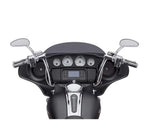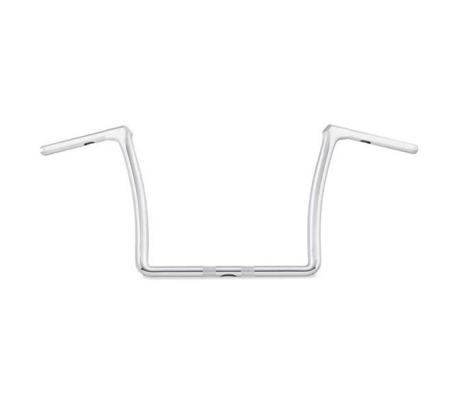 Fused Handlebar delivers the renegade, fists-in-the-wind riding style you crave. Chrome finish. Muscular cast elbows eliminate sharp internal bends to simplify the internal wiring. 1.25" bar slims down to 1" at the base to fit with the Original Equipment handlebar clamps. Material Content: Steel. Tip-To-Tip Measurement: 38 inch. Base Width: 17.40 inch. Rise: 12.90 inch. Pullback: 4.6 inch.