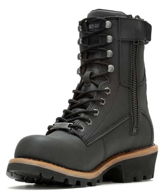 Harley-Davidson® Men's Riding Appropriate* Tyson 7.5-Inch Black Flash Reflective Leather Motorcycle Boots, D96295. This version of the fan favorite Tyson series features 360-degrees of flash reflectivity for enhanced visibility. You’ll be seen long before you’re heard. With a tough logger style Vibram® outsole, and 2-inch heels, you'll move the earth itself when stepping off your bike. Featuring Poron® ankle protection and a YKK® heavy duty locking inside metal zipper with a Velcro® closure, these boots work as hard as you do. Made with full-grain flash reflective leather and a full-length mesh lining, these boots also feature Poron® ankle protection for wherever the road takes you. On and off the bike, these boots are styled for all-day wear. Five metal logo eyelets combine with four logo speed-hooks, which complete the final tie-off. YKK® locking inside zippers makes donning easy - step-in, lace and zip-up, and you’re out the door. Hardware includes a metal logo badge on the bottom lace, and another badge near the top of the shaft. The shaft is ribbed, and the tongue and collar are cushioned for maximum comfort, all day long. The street-side Vibram® rubber outsoles have a classic yellow Vibram® logo at the instep. Outsole performance rated "BEST" for abrasion, slip, and oil resistance. The boot's sole, insole and upper are bound using Goodyear® Welt construction, completing the boot with trusted durability while affording a nice and easy stride. Total height: 9.5", Shaft height: 7.5", Heel height: 2". Sizes US: M 7-12, 13. Manufacturer Part Number, D96295. Wolverine® and Harley-Davidson® have a long tradition of bringing original and functional footwear to our motorcycle enthusiasts. Loyal. Tough. Fearless. Our Footwear embodies the spirit of the open road, as well as the men and women who proudly wear the name. With a growing global presence, Harley-Davidson® Footwear markets functional riding and fashion footwear to anyone who seeks quality and values the Harley-Davidson® brand. Whether it's performance or fashion, we have what you need. Officially Licensed Harley-Davidson® Product by Wolverine®. *Riding Appropriate – Abrasion, slip, and oil-resistant boots, ideal for riding motorcycles.