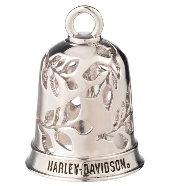 Adorable leaf cut out design. Iconic Harley-Davidson script. Made from durable brass with silver plating. Includes rope for hanging.