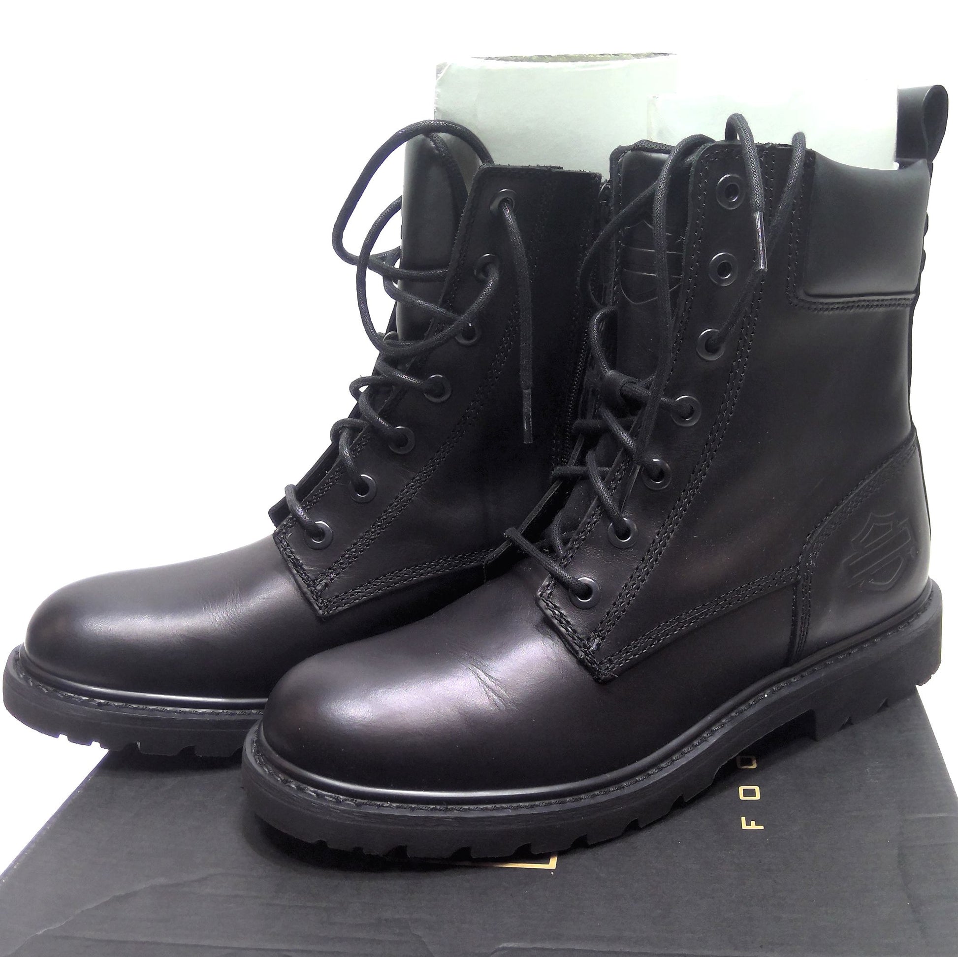 Harley-Davidson® Men’s Beason Riding Appropriate* Black 6.75-Inch Motorcycle Boots, D93708. "No-nonsense" styling means we get straight to the point: These boots are made for riding. A clean, rounded toe leads to 7-metal eyelets. With YKK® locking inside zippers, donning is easy and is aided by a pull-on loop at the top of the shaft. All-over black cord laces are also included for an alternative blacked-out look. A silhouette Bar & Shield® logo is debossed at the outside face of the heel’s counter, where it counts. The same style logo is on the padded tongue. The top of the shaft is also padded for hours of comfortable wear. The uppers are made with full-grain leather and have a full-length mesh lining. A classic orange Bar & Shield® logo is inserted into the street-side heel, and Harley-Davidson® is spelled out in script on the outsole. The outsoles are rated "BEST" for slip resistance. The boot's sole, insole and upper are bound using resoleable Goodyear® Welt construction processes, the most labor intensive and durable construction method available. Shaft height: 6.75", Heel height: 1.25". Sizes US: M 7-12, 13. Manufacturer Part Number, Black-D93708. Wolverine® and Harley-Davidson® have a long tradition of bringing original and functional footwear to our motorcycle enthusiasts. Loyal. Tough. Fearless. Our Footwear embodies the spirit of the open road, as well as the men and women who proudly wear the name. With a growing global presence, Harley-Davidson® Footwear markets functional riding and fashion footwear to anyone who seeks quality and values the Harley-Davidson® brand. Whether it's performance or fashion, we have what you need. Officially Licensed Harley-Davidson® Product by Wolverine®. *Riding Appropriate – Abrasion, slip, and oil-resistant boots, ideal for riding motorcycles.
