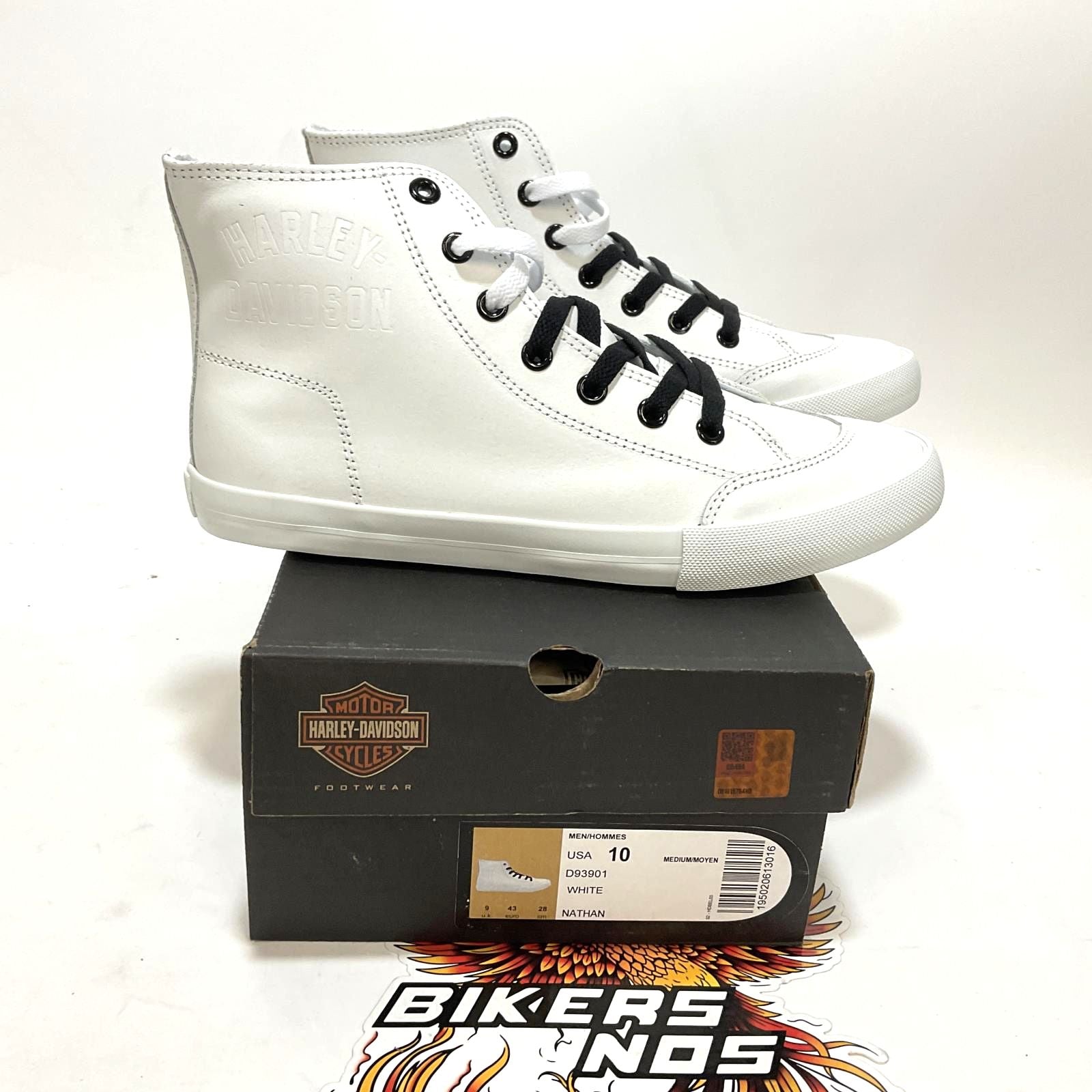 Harley Part # D93901-10 - NEW Harley Mens Size 10 Nathan High-Top White Leather Sneakers