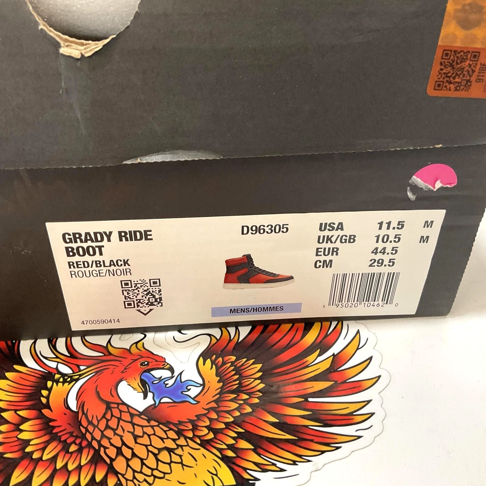 This Grady Ride performance riding sneaker comes in red with black block colorways. Featuring Poron® ankle protection against extreme impacts, reflective piping, and durable full-grain leather with a rubber outsole, this model will allow you to ride all day and all night in comfort. Classically styled, this boot has a debossed Harley-Davidson® silhouette Bar & Shield® logo on the heel’s counter. A color coordinated fabric logo is also attached to the padded cuff. Another debossed silhouette Bar & Shield® is on the padded tongue. Reflective piping adds protection in low-light conditions. The rubber outsole is classic white, with another Bar & Shield® logo imbedded at the street-side instep. After the ride, with a full-length mesh lining, these boots provide the stylish comfort needed for work and for play at any venue. The fun really starts when the kickstand goes down. The boot's sole, insole and upper are bound using cement construction processes, a time honored and durable method that allows for a flexible and easy stride. Uptown, downtown, at work or play, or while riding on your motorcycle, these boots will get you there in style and comfort. Shaft height: 5.25", Heel height: 1". Sizes US: M 7-12, 13. Manufacturer Part Number, D96304. Wolverine® and Harley-Davidson® have a long tradition of bringing original and functional footwear to our motorcycle enthusiasts. Loyal. Tough. Fearless. Our Footwear embodies the spirit of the open road, as well as the men and women who proudly wear the name. With a growing global presence, Harley-Davidson® Footwear markets functional riding and fashion footwear to anyone who seeks quality and values the Harley-Davidson® brand. Whether it's performance or fashion, we have what you need. Officially Licensed Harley-Davidson® Product by Wolverine®. *Riding Appropriate – Abrasion, slip, and oil-resistant boots, ideal for riding motorcycles.
