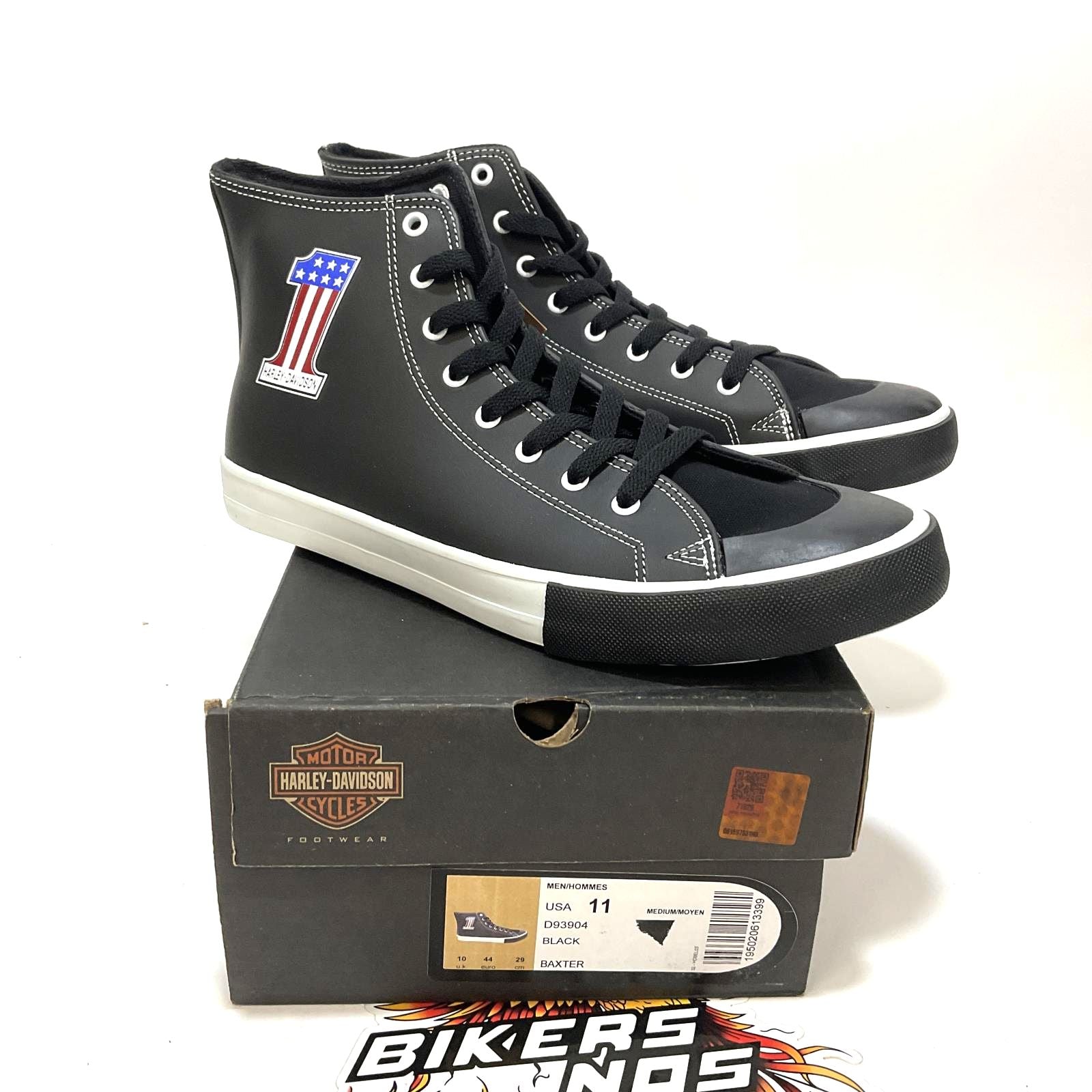 Harley Part # D93904-11 - NEW Harley Mens Size 11 Baxter High-Top #1 Black Leather Sneakers