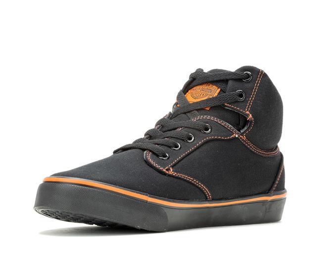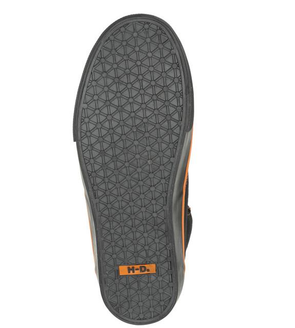 Feel comfortable and look iconic with these classically styled black sneakers with orange highlights. These canvas vulcanized sneakers will take your off-the-bike street cred to the next level. Part of the Vintage Collection of Harley® footwear, these sneakers are made with high quality canvas and vulcanized rubber outsoles. The tongue is low profile and padded. The cuffs are padded, as well. They are up to the task, whether walking, running, or jumping. With orange thread highlights and orange H-D® badging, the heritage is unmistakable. The black outsole color matches the canvas, and the street-side has a classic H-D® logo on the heel. The boot's outsole is made using vulcanized construction processes, extending the outsole’s durability and flexibility, affording the comfort you desire no matter the activity. Uptown or downtown, these sneakers epitomize style and comfort. Each pair of sneakers comes with a contrasting orange colored second lace. Shaft height: 3.5", Heel height: 1". Sizes US: M 7-12, 13. Manufacturer Part Number, D93898. Wolverine® and Harley-Davidson® have a long tradition of bringing original and functional footwear to our motorcycle enthusiasts. Loyal. Tough. Fearless. Our Footwear embodies the spirit of the open road, as well as the men and women who proudly wear the name. With a growing global presence, Harley-Davidson® Footwear markets functional riding and fashion footwear to anyone who seeks quality and values the Harley-Davidson® brand. Whether it's performance or fashion, we have what you need. Officially Licensed Harley-Davidson® Product by Wolverine®. These sneakers are not recommended for riding on motorcycles.