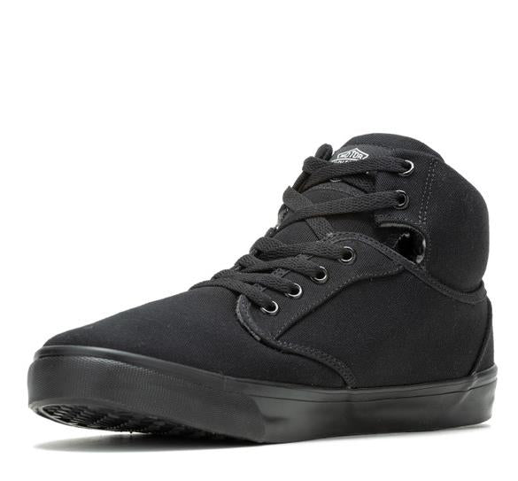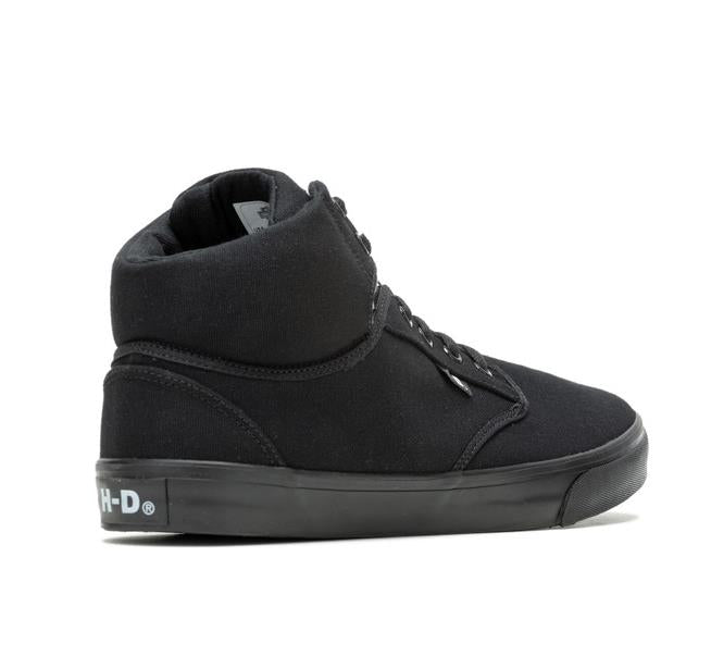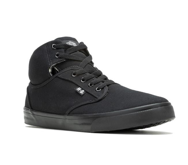 Harley-Davidson® Men's Wrenford Black 3.5-Inch Canvas Sneakers, D93899. Feel comfortable and look iconic with the Wrenford all black canvas vulcanized sneaker. With a low profile, rubber outsoles, and a classic Bar & Shield® logo on the tongue, there is just enough H-D® edge to satisfy your inner rebel. With a padded cuff and tongue, traditional lacing and a canvas lining, all-day comfort is assured. There is also a fabric H-D® badge sewn onto the eyelet panel, as well as another H-D® badge on the backside of the heel. The street-side sole has cross-hatched tread elements for a sure footing. The boot's sole, insole and upper are bound using vulcanized processes, a proven technology that binds the upper, midsole, and sole components making for a sturdy and durable sneaker. The end result - these sneakers will last for years. Uptown, downtown, at work or play, these canvas sneakers will carry you in style and comfort. Shaft height: 3.5", Heel height: 1". Sizes US: M 7-12, 13. Manufacturer Part Number, D93899. Wolverine® and Harley-Davidson® have a long tradition of bringing original and functional footwear to our motorcycle enthusiasts. Loyal. Tough. Fearless. Our Footwear embodies the spirit of the open road, as well as the men and women who proudly wear the name. With a growing global presence, Harley-Davidson® Footwear markets functional riding and fashion footwear to anyone who seeks quality and values the Harley-Davidson® brand. Whether it's performance or fashion, we have what you need. Officially Licensed Harley-Davidson® Product by Wolverine®. These sneakers are not recommended for wear while riding a motorcycle.