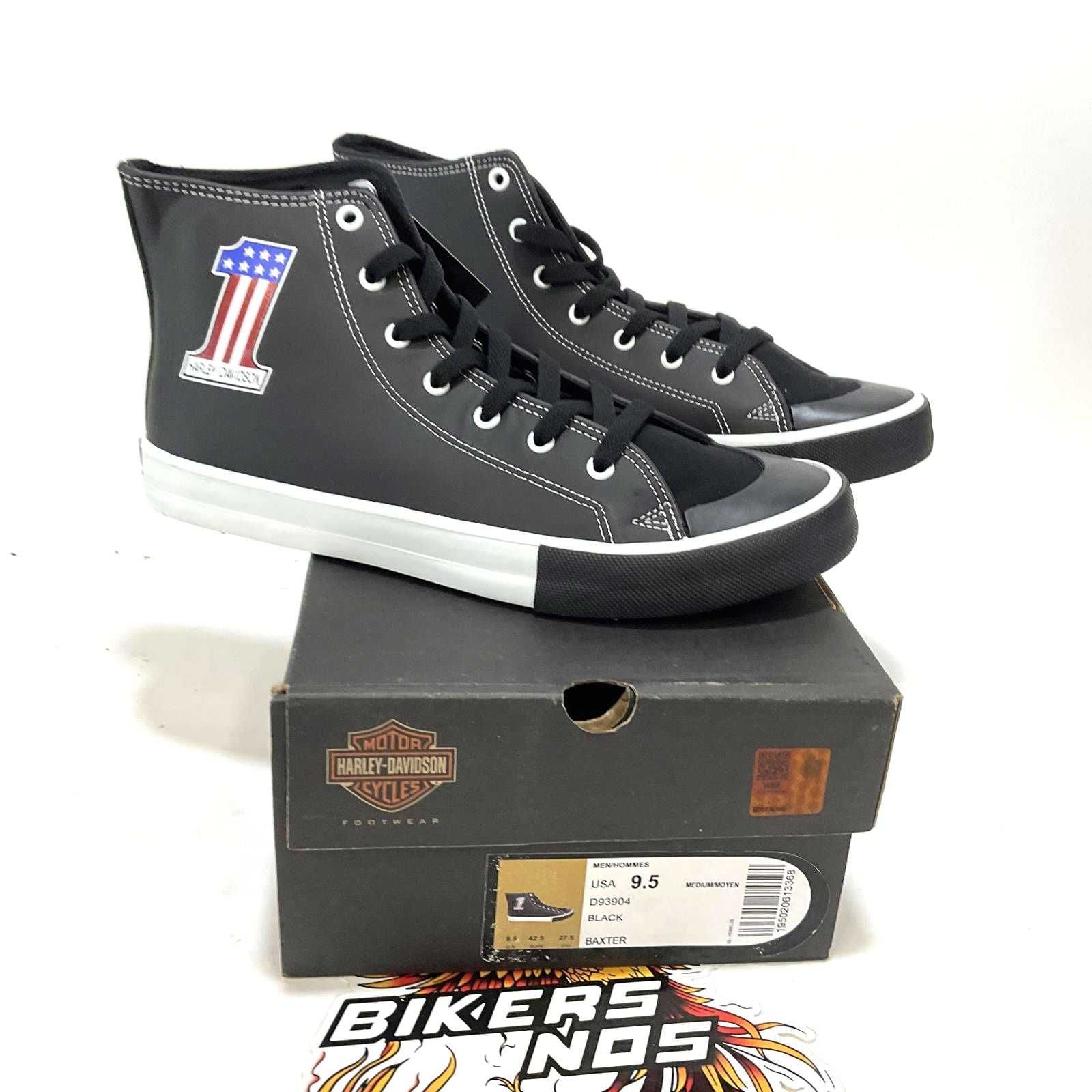 Harley Part # D93904-9.5 - NEW Harley Mens Size 9.5 Baxter High-Top #1 Black Leather Sneakers
