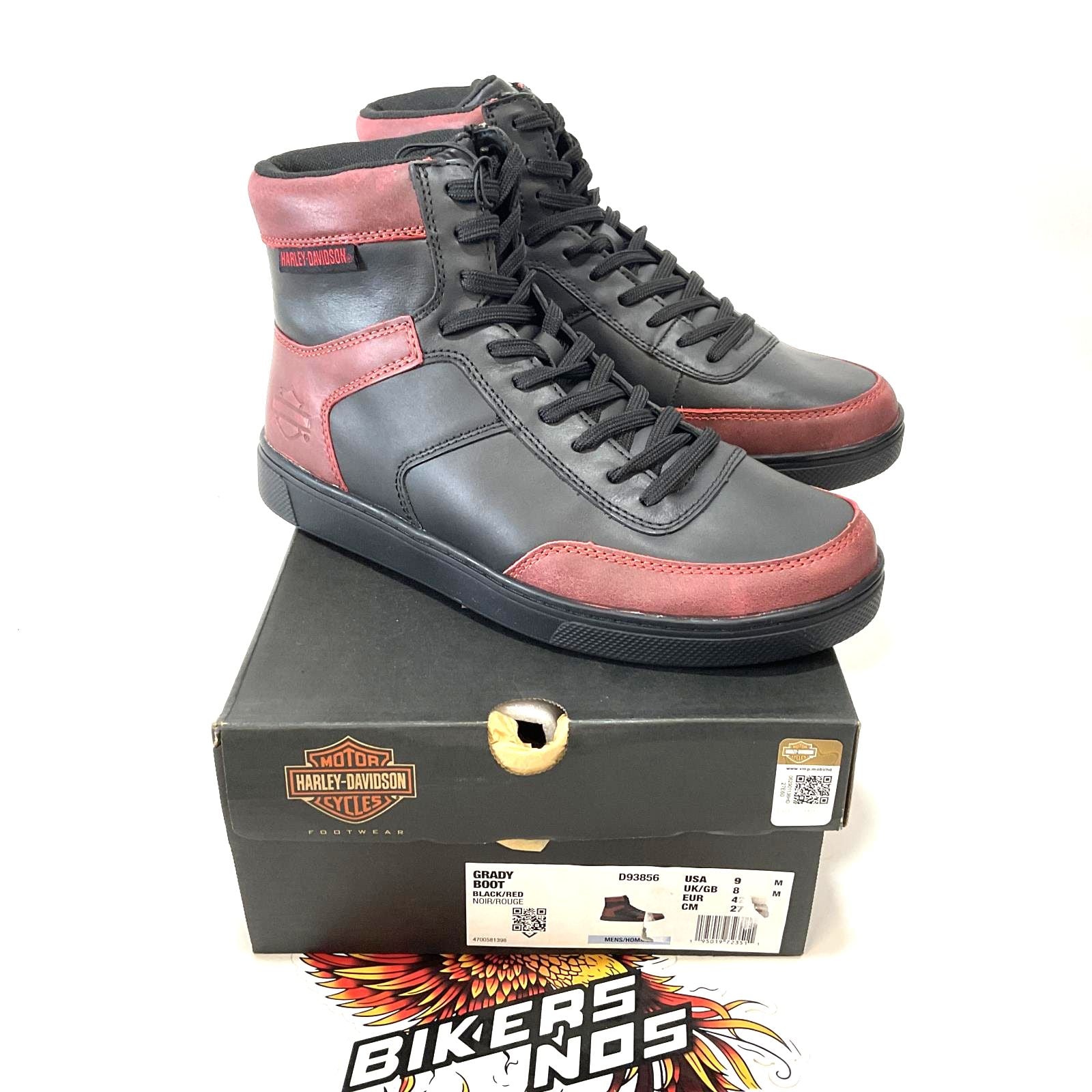 The Grady sneaker boot features stark black and dark-red block colorways. Featuring durable full-grain leather uppers with a rubber outsole and a full-length mesh lining, these boots provide the stylish comfort needed for work and for play at any venue. The Grady was designed to bring a new modern aesthetic to the Harley-Davidson® footwear line. The badging is subtle, with a debossed Bar & Shield® silhouette on the heel’s counter and fabric logo badging at the top of the shaft in matching red. The tongue is padded for additional comfort. The boot's sole, insole and upper are bound using cement construction processes, a time honored and durable method that allows for a flexible and easy stride. A matching Bar & Shield® logo can be found on the street-side, at the instep. Uptown, downtown, at work or play, or on a bike, these boots will get you there in style and comfort. Shaft height: 5.25", Heel height: 1". Sizes US: M 7-12, 13. Manufacturer Part Number, D93856. Wolverine® and Harley-Davidson® have a long tradition of bringing original and functional footwear to our motorcycle enthusiasts. Loyal. Tough. Fearless. Our Footwear embodies the spirit of the open road, as well as the men and women who proudly wear the name. With a growing global presence, Harley-Davidson® Footwear markets functional riding and fashion footwear to anyone who seeks quality and values the Harley-Davidson® brand. Whether it's performance or fashion, we have what you need. Officially Licensed Harley-Davidson® Product by Wolverine®.