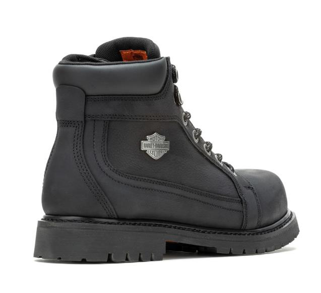 Harley-Davidson® Men's Drewett 5.5-Inch Black Waterproof Composite Safety Toe Boots, D93854. On the job, the Drewett 5.5-Inch composite toe work boot will satisfy your inner rebel – providing the safety you require wrapped in unmatched styling. Made with waterproof full-grain leather, durable Goodyear® welt construction, a padded collar and a rubber outsole, this HD® boot will work as hard as you do. These boots make the grade with ASTM F2413-18 M I C EH compliant, individually fitting left and right safety toe caps. A HydroGuard™ waterproof membrane lining offers breathable protection from the elements anywhere you go. The toe is rounded, and lacing is accomplished using five riveted metal logo eyelets, finished off with two quick-lace speed-hooks. Once the YKK® locking inside zippers are zipped, lace and tie off to finish the donning process. A badge on the bottom lace reminds you that these boots are waterproof. With a padded tongue and cuff, standing or walking is made comfortable and easy. A metal Bar & Shield® badge is on the shaft, and the street-side instep has a Harley® orange logo insert. The rubber outsole and Goodyear® Welt construction completes the boot with trusted durability. For work, or while strutting around town, these boots will get you where you want to be. Shaft height: 5.5", Heel height: 1.5". Sizes US: M 7-12, 13. Manufacturer Part Number, D93854. Wolverine® and Harley-Davidson® have a long tradition of bringing original and functional footwear to our motorcycle enthusiasts. Loyal. Tough. Fearless. Our Footwear embodies the spirit of the open road, as well as the men and women who proudly wear the name. With a growing global presence, Harley-Davidson® Footwear markets functional riding and fashion footwear to anyone who seeks quality and values the Harley-Davidson® brand. Whether it's performance or fashion, we have what you need. Officially Licensed Harley-Davidson® Product by Wolverine®.