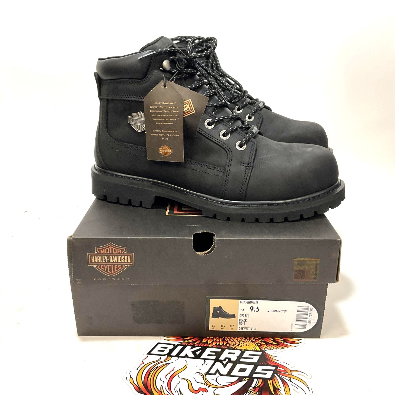 Harley Part # D93854-9.5 NEW Harley-Davidson Men's Drewett 5.5-Inch Black Waterproof Safety Boots