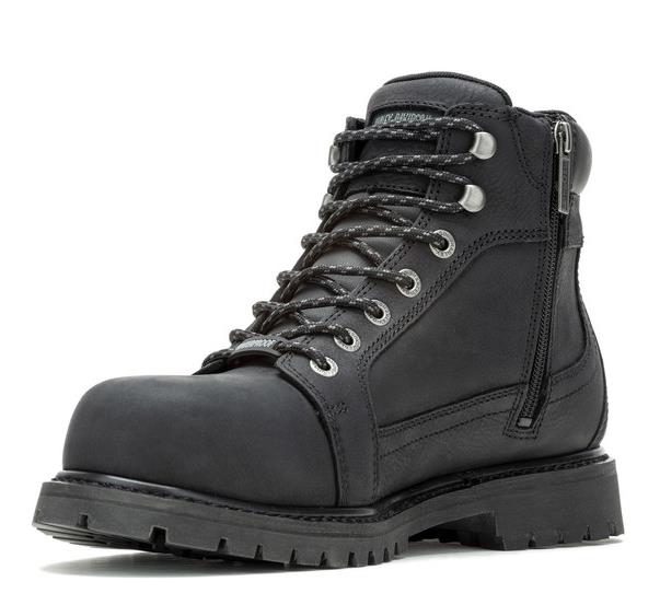 Harley-Davidson® Men's Drewett 5.5-Inch Black Waterproof Composite Safety Toe Boots, D93854. On the job, the Drewett 5.5-Inch composite toe work boot will satisfy your inner rebel – providing the safety you require wrapped in unmatched styling. Made with waterproof full-grain leather, durable Goodyear® welt construction, a padded collar and a rubber outsole, this HD® boot will work as hard as you do. These boots make the grade with ASTM F2413-18 M I C EH compliant, individually fitting left and right safety toe caps. A HydroGuard™ waterproof membrane lining offers breathable protection from the elements anywhere you go. The toe is rounded, and lacing is accomplished using five riveted metal logo eyelets, finished off with two quick-lace speed-hooks. Once the YKK® locking inside zippers are zipped, lace and tie off to finish the donning process. A badge on the bottom lace reminds you that these boots are waterproof. With a padded tongue and cuff, standing or walking is made comfortable and easy. A metal Bar & Shield® badge is on the shaft, and the street-side instep has a Harley® orange logo insert. The rubber outsole and Goodyear® Welt construction completes the boot with trusted durability. For work, or while strutting around town, these boots will get you where you want to be. Shaft height: 5.5", Heel height: 1.5". Sizes US: M 7-12, 13. Manufacturer Part Number, D93854. Wolverine® and Harley-Davidson® have a long tradition of bringing original and functional footwear to our motorcycle enthusiasts. Loyal. Tough. Fearless. Our Footwear embodies the spirit of the open road, as well as the men and women who proudly wear the name. With a growing global presence, Harley-Davidson® Footwear markets functional riding and fashion footwear to anyone who seeks quality and values the Harley-Davidson® brand. Whether it's performance or fashion, we have what you need. Officially Licensed Harley-Davidson® Product by Wolverine®.