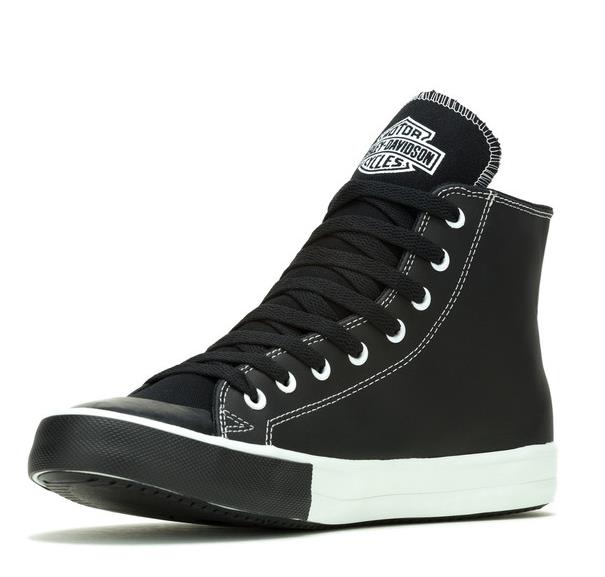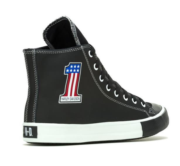 Showing your national pride is easy with these signature #1 Harley-Davidson® logo sneakers. Made with durable leather uppers and rubber outsoles, these puppies are street ready with all the cred built-in you need to go anywhere. They will go the distance, on-or-off the court or course - no matter the activity the H-D® edge will be with you. These sneakers are traditional in styling, but cutting edge in performance. With a full-length mesh lining, your feet are comfortable with each step or jump. The #1 logo appears on the outside face of the shaft. A large Bar & Shield® white logo appears on the tongue. The sneaker’s sole, insole and upper are bound using vulcanized processes, a proven technology that binds the upper, midsole, and sole components making for a sturdy and durable sneaker. These sneakers will last for years. Uptown, downtown, at work or play, they will boost your street-cred and carry you in-style and comfort. Shaft height: 4.25", Heel height: 1". Sizes US: M 7-12, 13. Manufacturer Part Number, Black-D93904. Wolverine® and Harley-Davidson® have a long tradition of bringing original and functional footwear to our motorcycle enthusiasts. Loyal. Tough. Fearless. Our Footwear embodies the spirit of the open road, as well as the men and women who proudly wear the name. With a growing global presence, Harley-Davidson® Footwear markets functional riding and fashion footwear to anyone who seeks quality and values the Harley-Davidson® brand. Whether it's performance or fashion, we have what you need. Officially Licensed Harley-Davidson® Product by Wolverine®. These sneakers are not recommended for wear while riding a motorcycle.