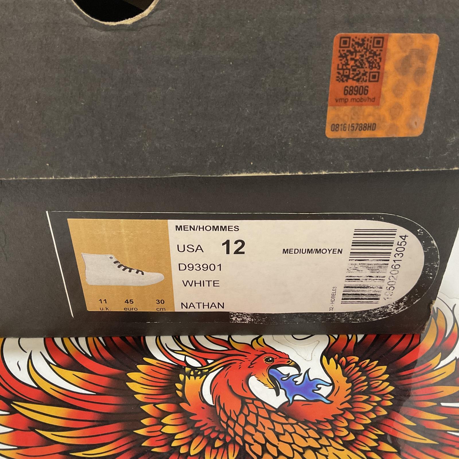 Harley Part # D93901-12 - NEW Harley Size 12 Mens Nathan High-Top White Leather Sneakers