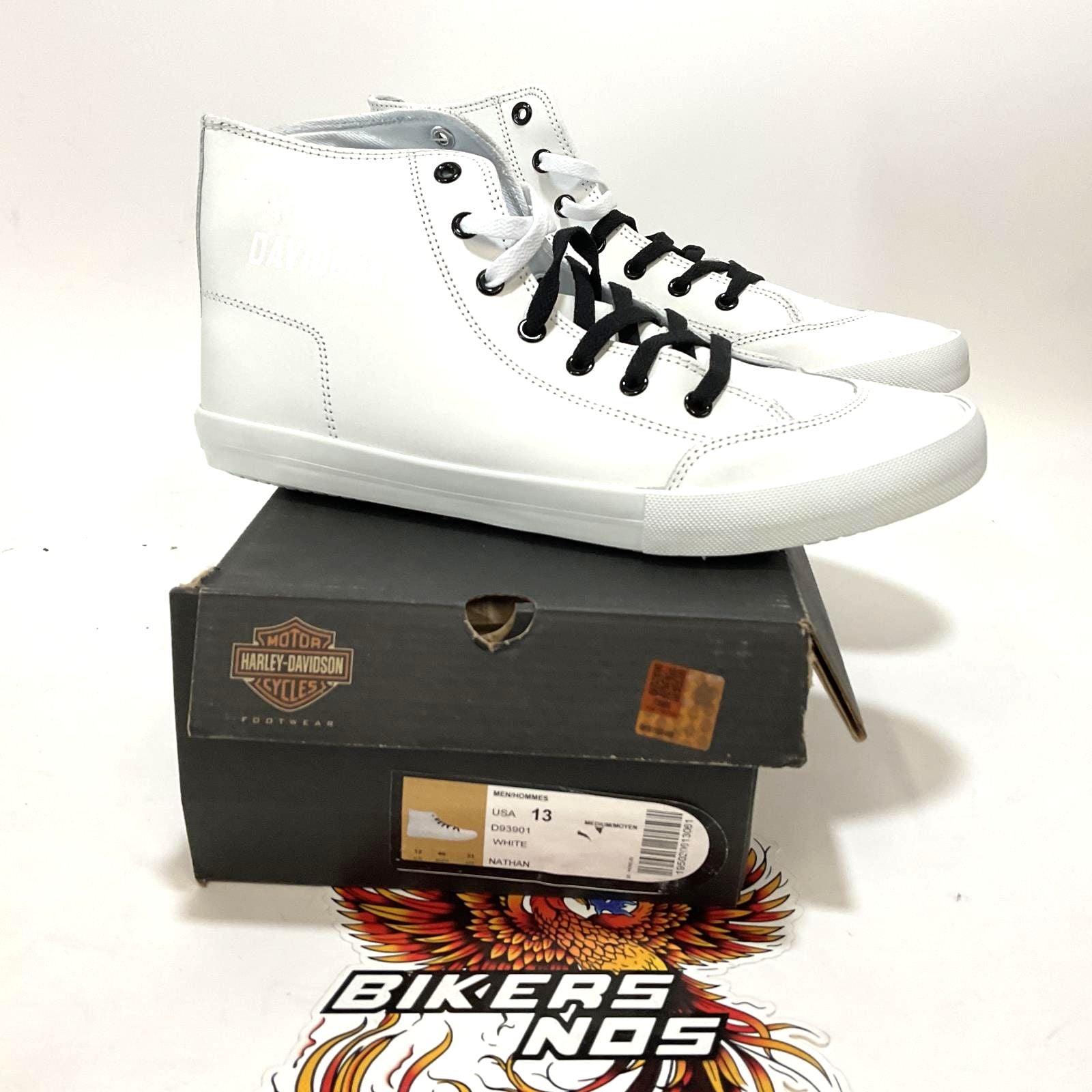 Harley Part # D93901-13 - NEW Harley Size 13 Mens Nathan High-Top White Leather Sneakers