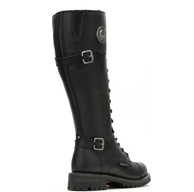 The classic Beechwood boot has been elevated with a knee-high shaft, a premium Willie G. Skull hardware medallion on the shaft, and further enhanced with waterproof full-grain leather, and a HydroGuard™ waterproof lining for added confidence on the road. This sexy lace-up is designed with YKK® locking inside zippers for a quick and secure fit, completing your sassy moto look. This classic lace-up silhouette is perfect for any occasion - donning easy with logo eyelets and speed-hooks. A waterproof fabric badge is a reminder that these boots are all-weather ready. A Harley-Davidson® metal badge is on the bottom lace, and snugging logo straps and buckles at the bottom and near the top of the shaft ensure a perfect fit. The outsole is made of grippy rubber, and a classic orange Bar & Shield® logo inserted at the instep. The boot's sole, insole and upper are bound using Goodyear® Welt construction, completing the boot with trusted durability. The Beechwood Skull will get you through anything, adding unspeakable sass into each step you take. Total height: 16.5", Shaft height: 15", Heel height: 1.5". Sizes US: M 5-10, 11. Manufacturer Part Number, D87283. Wolverine® and Harley-Davidson® have a long tradition of bringing original and functional footwear to our Motorcycle enthusiasts. Loyal. Tough. Fearless. Our Footwear embodies the spirit of the open road, as well as the men and women who proudly wear the name. With a growing global presence, Harley-Davidson® Footwear markets functional riding and Motorcycle footwear to anyone who seeks quality and values the Harley-Davidson® brand. Whether it's performance or Motorcycle, we have what you need. Officially Licensed Harley-Davidson® Product by Wolverine®. These boots are not recommended for riding on a motorcycle.