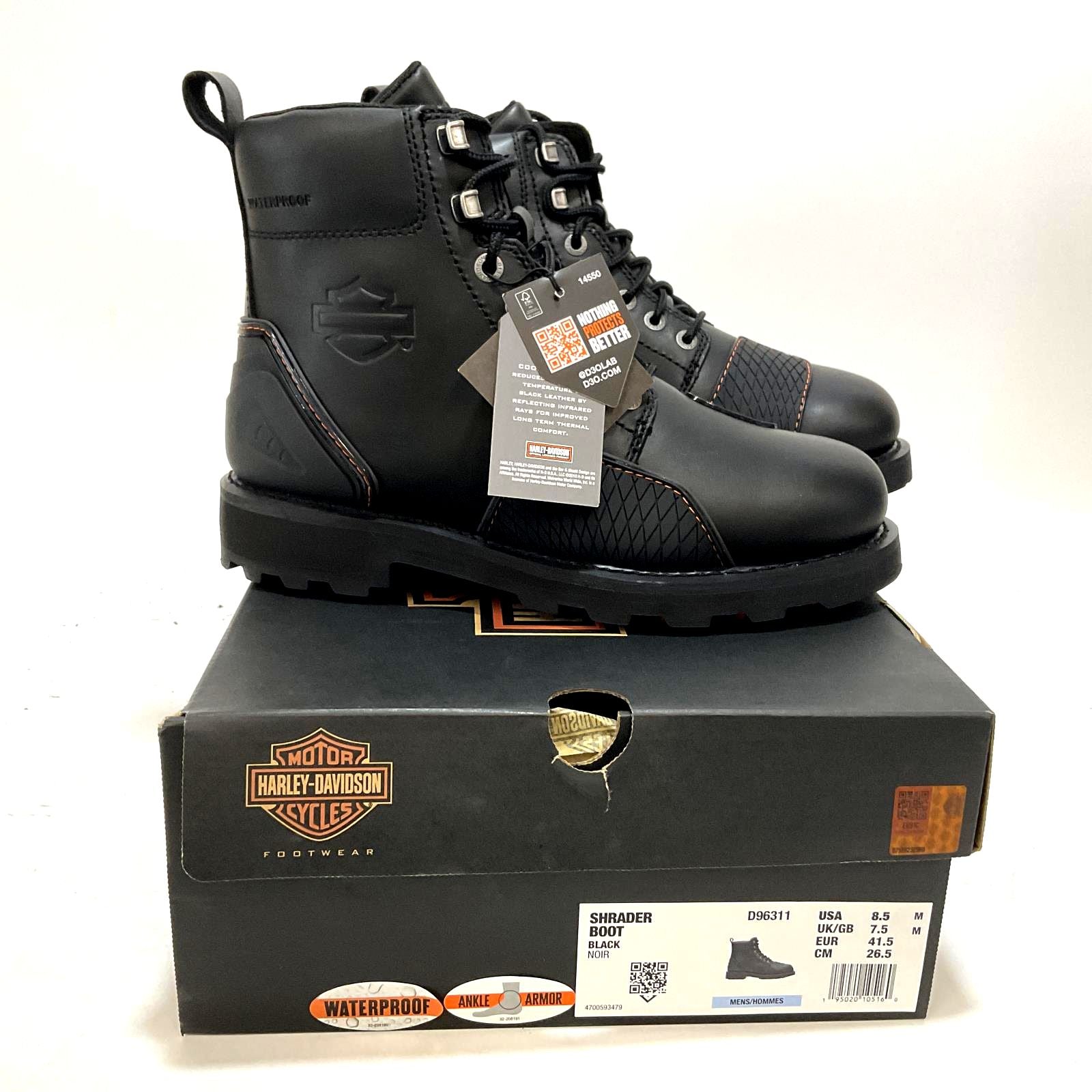 Harley Part # D96311-8.5 NEW Harley-Davidson Mens Shrader 6-Inch Black Waterproof Motorcycle Boots