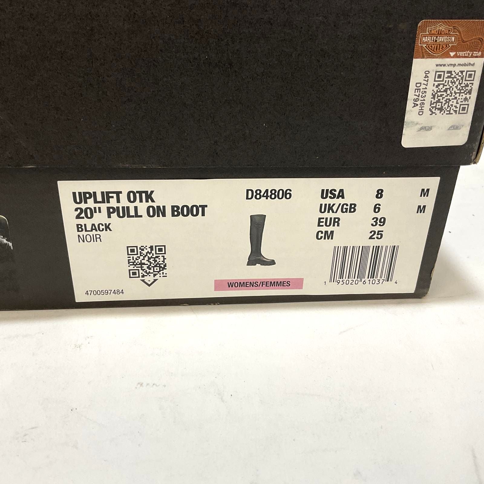 These Uplift knee-high boots are additive to any wardrobe – no matter where they take you, heads will turn. The sleek all-black look with stretch leather rises up over 20-inches off the ground. The 20-inch shaft conforms and emphases the calf, rising up to the knees. The toe is rounded leading up to a plain and beautiful 20-inch shaft. An embossed Harley-Davidson® Bar & Shield graces the outside face of the shaft. Made with full-grain stretch leather with a full-length mesh lining for total comfort, you will be ready for anything. Lightweight outsoles and heels make each step seem effortless. The boot's sole, insole and upper are bound using cement construction processes, a time honored and durable method that allows for a flexible and easy stride. Adding to the 20-inch shaft, the gentle 1.75-inch heel adds the perfect lift. Another Harley® logo can be found on the street-side instep. For work or play, no matter the activity, these boots will turn heads, and in a good way. These boots are a wardrobe staple, both versatile and chic. Couple with dresses, leggings, or skirts for any eye-catching moment. Total height: 21.75”, Shaft height: 20", Heel height: 1.75". Sizes US: M 5-10. Manufacturer Part Number D84806. Wolverine® and Harley-Davidson® have a long tradition of bringing original and functional footwear to our Motorcycle enthusiasts. Loyal. Tough. Fearless. Our Footwear embodies the spirit of the open road, as well as the men and women who proudly wear the name. With a growing global presence, Harley-Davidson® Footwear markets functional riding and Motorcycle footwear to anyone who seeks quality and values the Harley-Davidson® brand. Whether it's performance or Motorcycle, we have what you need. Officially Licensed Harley-Davidson® Product by Wolverine®.