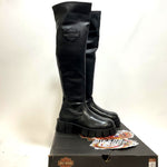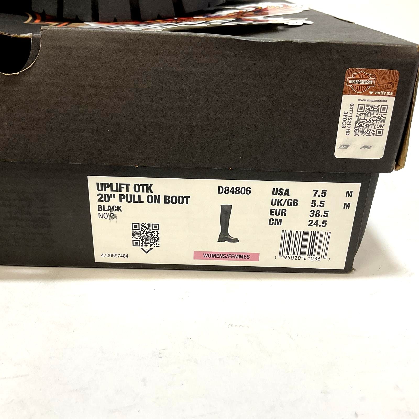 These Uplift knee-high boots are additive to any wardrobe – no matter where they take you, heads will turn. The sleek all-black look with stretch leather rises up over 20-inches off the ground. The 20-inch shaft conforms and emphases the calf, rising up to the knees. The toe is rounded leading up to a plain and beautiful 20-inch shaft. An embossed Harley-Davidson® Bar & Shield graces the outside face of the shaft. Made with full-grain stretch leather with a full-length mesh lining for total comfort, you will be ready for anything. Lightweight outsoles and heels make each step seem effortless. The boot's sole, insole and upper are bound using cement construction processes, a time honored and durable method that allows for a flexible and easy stride. Adding to the 20-inch shaft, the gentle 1.75-inch heel adds the perfect lift. Another Harley® logo can be found on the street-side instep. For work or play, no matter the activity, these boots will turn heads, and in a good way. These boots are a wardrobe staple, both versatile and chic. Couple with dresses, leggings, or skirts for any eye-catching moment. Total height: 21.75”, Shaft height: 20", Heel height: 1.75". Sizes US: M 5-10. Manufacturer Part Number D84806. Wolverine® and Harley-Davidson® have a long tradition of bringing original and functional footwear to our Motorcycle enthusiasts. Loyal. Tough. Fearless. Our Footwear embodies the spirit of the open road, as well as the men and women who proudly wear the name. With a growing global presence, Harley-Davidson® Footwear markets functional riding and Motorcycle footwear to anyone who seeks quality and values the Harley-Davidson® brand. Whether it's performance or Motorcycle, we have what you need. Officially Licensed Harley-Davidson® Product by Wolverine®.