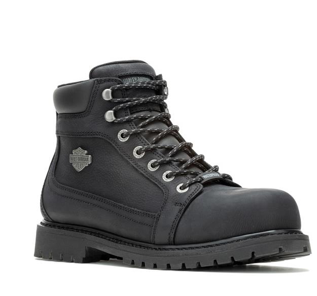 Harley-Davidson® Men's Drewett 5.5-Inch Black Waterproof Composite Safety Toe Boots, D93854. On the job, the Drewett 5.5-Inch composite toe work boot will satisfy your inner rebel – providing the safety you require wrapped in unmatched styling. Made with waterproof full-grain leather, durable Goodyear® welt construction, a padded collar and a rubber outsole, this HD® boot will work as hard as you do. These boots make the grade with ASTM F2413-18 M I C EH compliant, individually fitting left and right safety toe caps. A HydroGuard™ waterproof membrane lining offers breathable protection from the elements anywhere you go. The toe is rounded, and lacing is accomplished using five riveted metal logo eyelets, finished off with two quick-lace speed-hooks. Once the YKK® locking inside zippers are zipped, lace and tie off to finish the donning process. A badge on the bottom lace reminds you that these boots are waterproof. With a padded tongue and cuff, standing or walking is made comfortable and easy. A metal Bar & Shield® badge is on the shaft, and the street-side instep has a Harley® orange logo insert. The rubber outsole and Goodyear® Welt construction completes the boot with trusted durability. For work, or while strutting around town, these boots will get you where you want to be. Shaft height: 5.5", Heel height: 1.5". Sizes US: M 7-12, 13. Manufacturer Part Number, D93854. Wolverine® and Harley-Davidson® have a long tradition of bringing original and functional footwear to our motorcycle enthusiasts. Loyal. Tough. Fearless. Our Footwear embodies the spirit of the open road, as well as the men and women who proudly wear the name. With a growing global presence, Harley-Davidson® Footwear markets functional riding and fashion footwear to anyone who seeks quality and values the Harley-Davidson® brand. Whether it's performance or fashion, we have what you need. Officially Licensed Harley-Davidson® Product by Wolverine®.