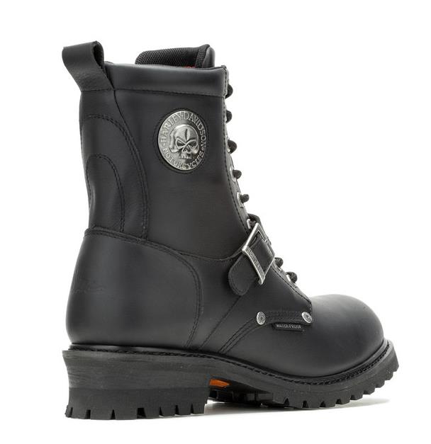 This classic boot's style is updated with the Skull badge on the shaft - a style that will endure through the years. The uppers are made from the best waterproof full-grain leather available, with a full-length, breathable Hydro-Guard™ waterproof membrane, and Poron® ankle protection for added confidence on the road. A waterproof badge is sewn onto the boot, as a reminder - it's waterproof. Designed with a logo eyelets, a metal Harley® badge between the first eyelets, a front cross strap and Harley® buckle, and with the classic Harley® skull at the top of the shaft, this is a must have for wherever the road takes you. The oil and slip resistant rubber 'logger' outsole and leather strap with buckle detail make this an iconic HD® style. The boot's sole, insole and upper are bound using resoleable Goodyear® Welt construction processes, the most labor intensive and durable construction method available. Shaft height: 7.5"; Heel height: 1.75". Manufacturer Part Number D96299. Wolverine® and Harley-Davidson® have a long tradition of bringing original and functional footwear to our motorcycle enthusiasts. Loyal. Tough. Fearless. Our Footwear embodies the spirit of the open road, as well as the men and women who proudly wear the name. With a growing global presence, Harley-Davidson® Footwear markets functional riding and fashion footwear to anyone who seeks quality and values the Harley-Davidson® brand. Whether it's performance or fashion, we have what you need. Officially Licensed Harley-Davidson® Product by Wolverine®. *Riding Appropriate – Abrasion, slip, and oil-resistant boots, ideal for riding motorcycles.