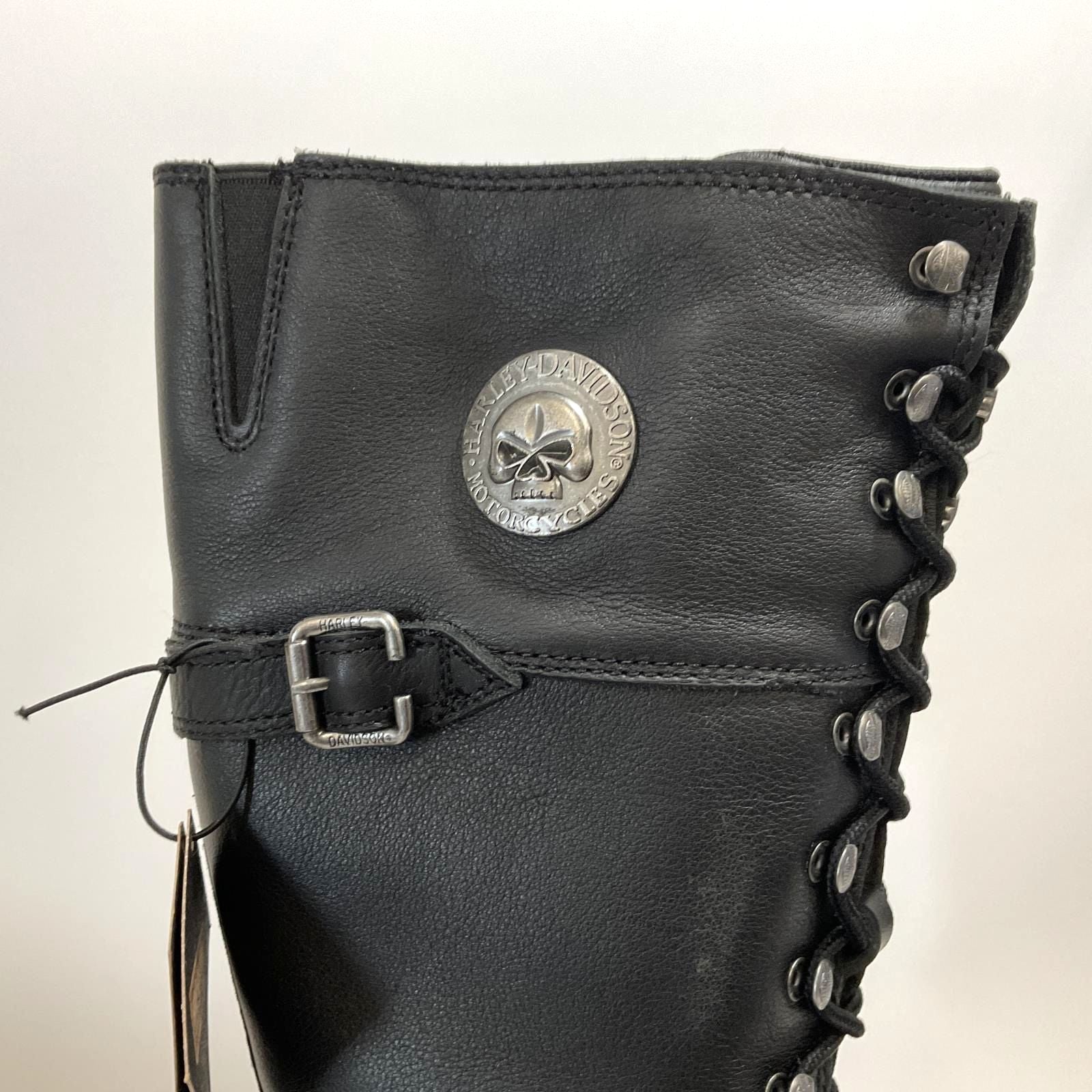 The classic Beechwood boot has been elevated with a knee-high shaft, a premium Willie G. Skull hardware medallion on the shaft, and further enhanced with waterproof full-grain leather, and a HydroGuard™ waterproof lining for added confidence on the road. This sexy lace-up is designed with YKK® locking inside zippers for a quick and secure fit, completing your sassy moto look. This classic lace-up silhouette is perfect for any occasion - donning easy with logo eyelets and speed-hooks. A waterproof fabric badge is a reminder that these boots are all-weather ready. A Harley-Davidson® metal badge is on the bottom lace, and snugging logo straps and buckles at the bottom and near the top of the shaft ensure a perfect fit. The outsole is made of grippy rubber, and a classic orange Bar & Shield® logo inserted at the instep. The boot's sole, insole and upper are bound using Goodyear® Welt construction, completing the boot with trusted durability. The Beechwood Skull will get you through anything, adding unspeakable sass into each step you take. Total height: 16.5", Shaft height: 15", Heel height: 1.5". Sizes US: M 5-10, 11. Manufacturer Part Number, D87283. Wolverine® and Harley-Davidson® have a long tradition of bringing original and functional footwear to our Motorcycle enthusiasts. Loyal. Tough. Fearless. Our Footwear embodies the spirit of the open road, as well as the men and women who proudly wear the name. With a growing global presence, Harley-Davidson® Footwear markets functional riding and Motorcycle footwear to anyone who seeks quality and values the Harley-Davidson® brand. Whether it's performance or Motorcycle, we have what you need. Officially Licensed Harley-Davidson® Product by Wolverine®. These boots are not recommended for riding on a motorcycle.